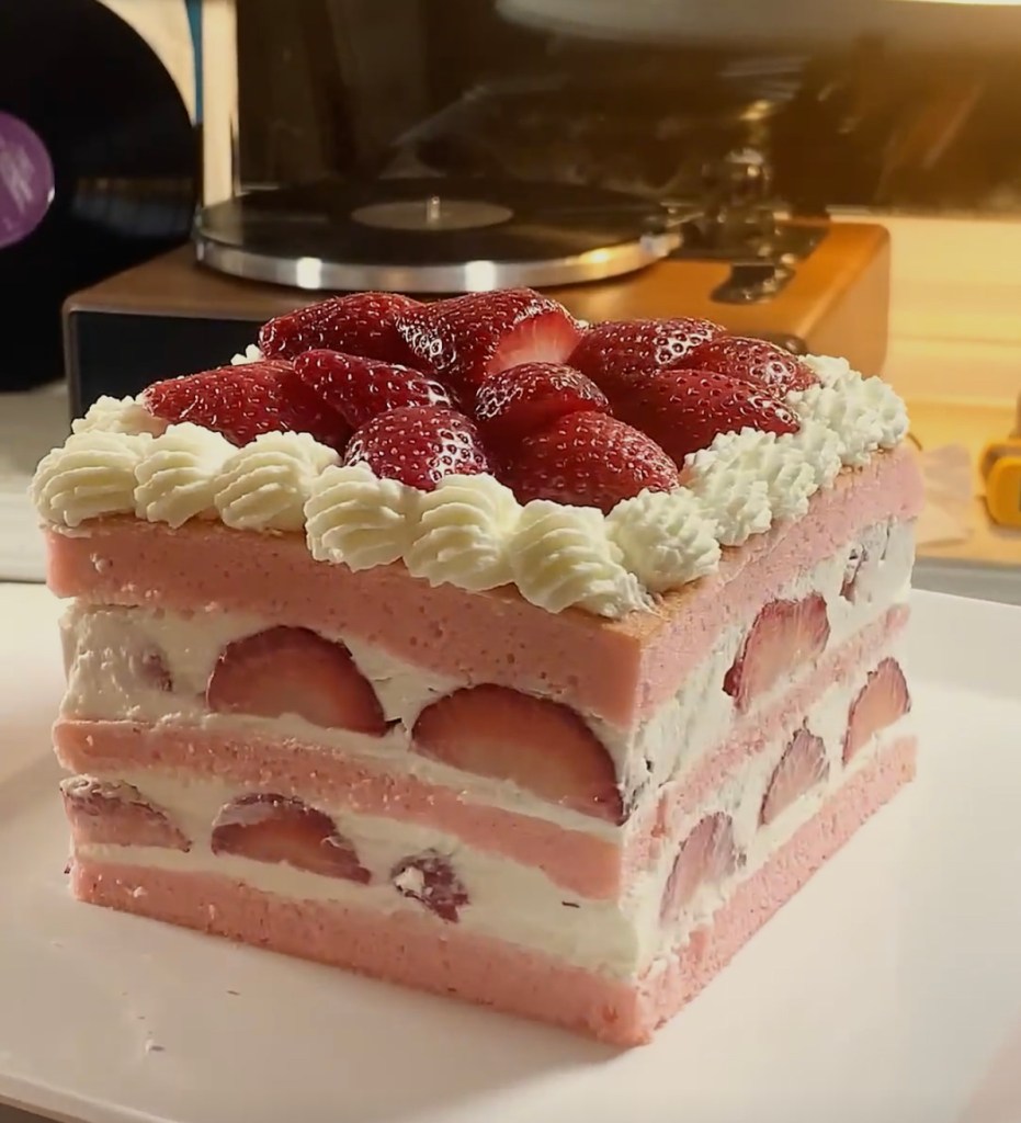 Top with strawberries and this is the final result. I hope you’ll make it, it’s easy, fun, & delicious ♪