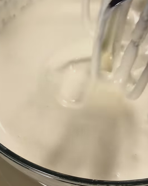 Beat with a hand mixer until you reach ribbon stage.