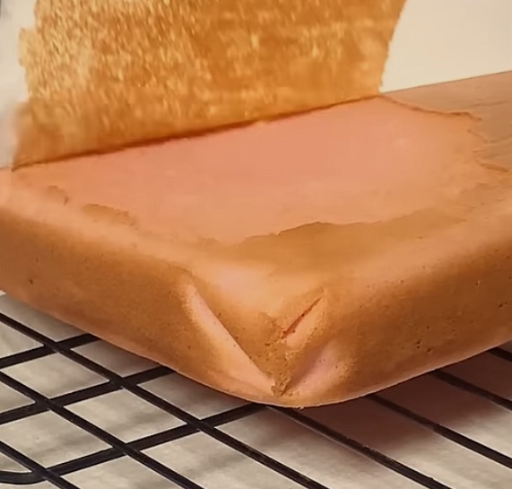 let cake cool completely on a wire rack. Take off parchment paper as soon as it comes out.